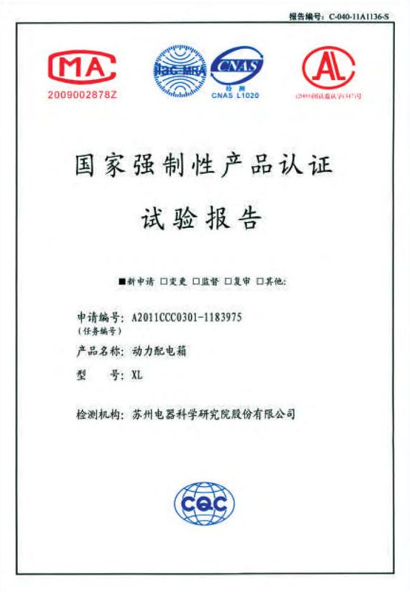 • 動力配電箱XL試驗報告